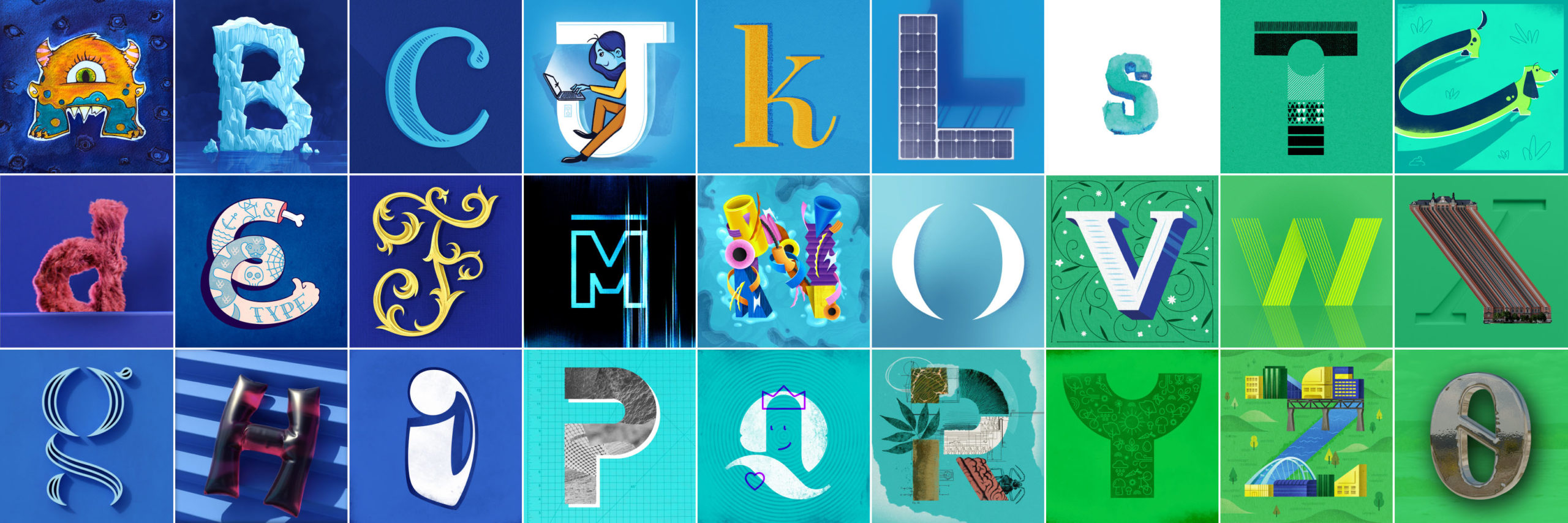 The 36 Days of Type Challenge happens every spring, with artists, designers, and animators around the world creating a letter a day to share on social media. The Sticks & Stones team decided to participate this year to flex some creative muscle in the throws of quarantine. Each letter in this collection is an experiment of a different style or technique.